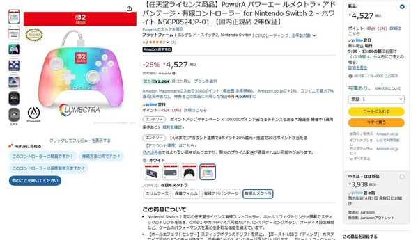 【任天堂ライセンス】めっちゃ光るSwitch 2用コントローラーが28%オフの4527円で買える! イルミネーションに目を奪われる……