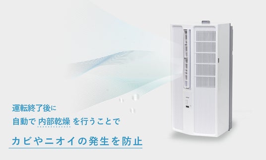 ACW-18Rは、必要な機能をしっかり備えたベーシックタイプの窓用エアコンです。すばやく冷やしたいときに便利なパワフル運転に加え、運転後に本体内部を乾燥させる内部乾燥モードを搭載。毎日の使いやすさと清潔に配慮した機能で、快適な空間づくりをサポートします。シンプルで選びやすく、幅広い暮らしにフィットするモデルです。