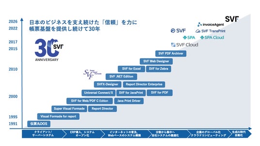 ウイングアーク1st株式会社(本社:東京都港区、代表取締役 社長執行役員CEO:田中 潤)は、デジタル帳票基盤「SVF(エスブイエフ)」が、2026年12月に30周年を迎えることをお知らせします。