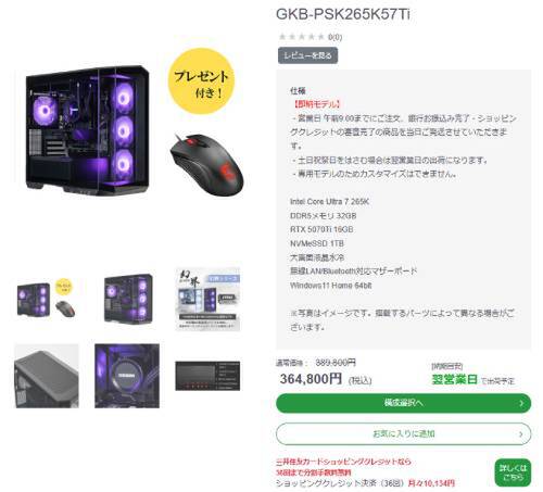 RTX5060搭載ゲーミングPCが19万円台。アーク大決算セールで狙い目モデルが値下げ -