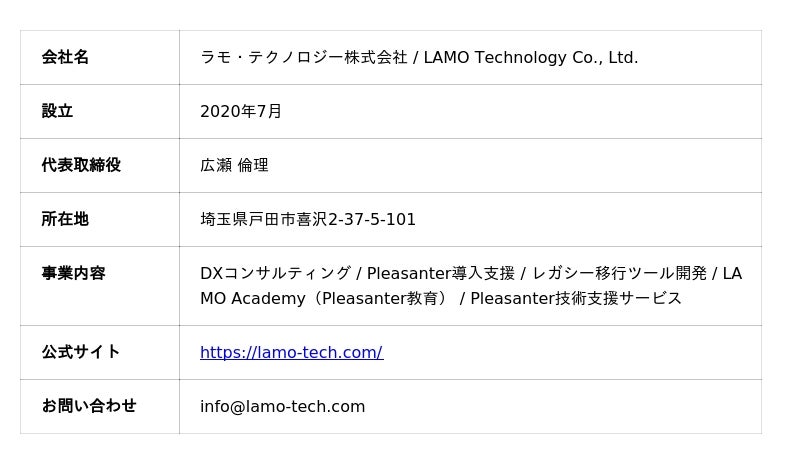 プリザンターは、現場業務の改善を支える柔軟なプラットフォームとして進化を続けてまいります。ラモ・テクノロジー株式会社様の取り組みにより、より多くのお客様の「マネジメント快適化」が前進することを期待しております。