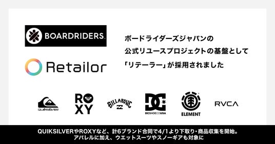 ボードライダーズジャパンの公式リユースプロジェクトの基盤として、リコマースオペレーティングシステム「Retailor(リテーラー)」が採用されました