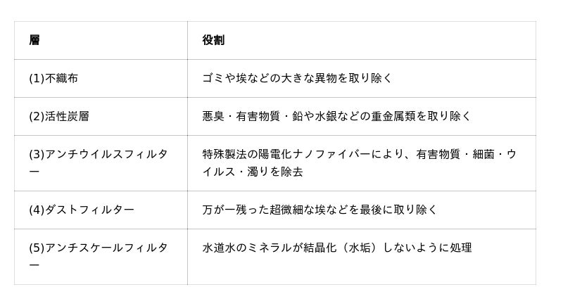 従来の「活性炭層」に加え、特殊製法の「アンチウイルスフィルター」を新たに搭載。