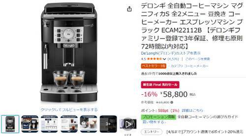 ボタンひとつで“豆から挽きたて”の本格コーヒーが飲める! デロンギの全自動コーヒーマシンが58,800円【新生活セール Final】