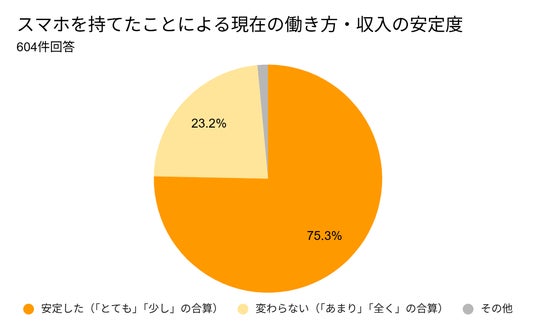 そして、一度は労働市場から遠ざけられた人々も、スマートフォンを再び手にしたことで状況は大きく好転しています。スマホを持てたことで現在の働き方や収入が「少し安定した」「とても安定した」と回答した人の合計は455名に達しました。