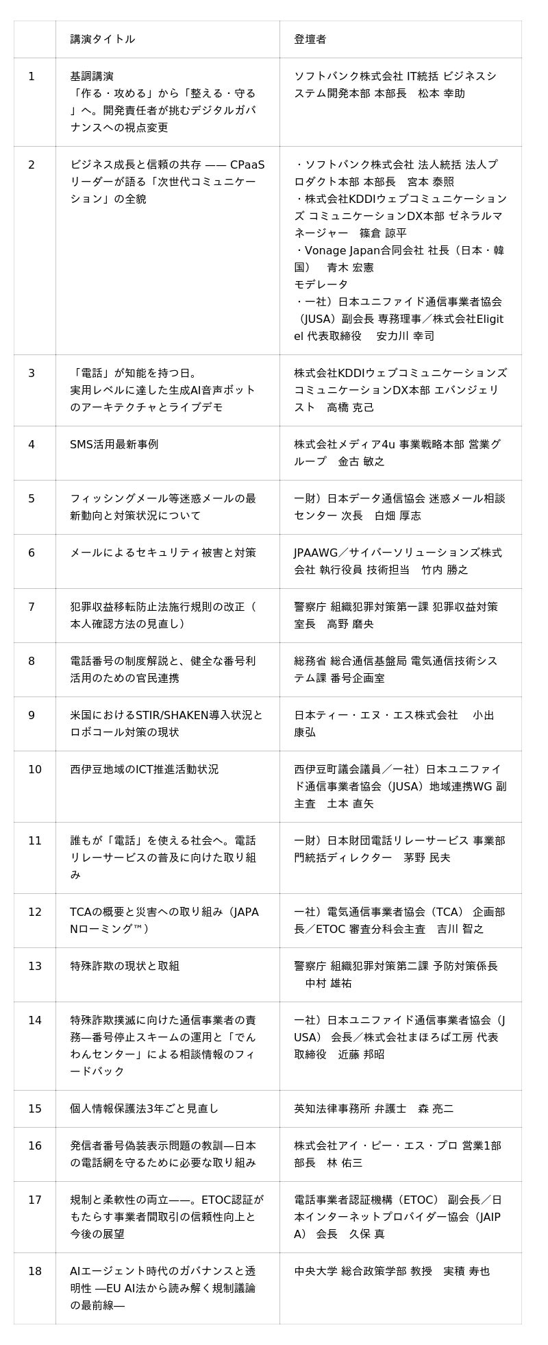 【後援】 電話事業者認証機構(ETOC)、一般社団法人電気通信事業者協会(TCA)、一般社団法人日本インターネットプロバイダー協会(JAIPA)、一般社団法人テレコムサービス協会(TELESA)、一般社団法人日本ケーブルテレビ連盟(JCTA)、一般財団法人日本データ通信協会、Japan Anti-Abuse Working Group(JPAAWG)