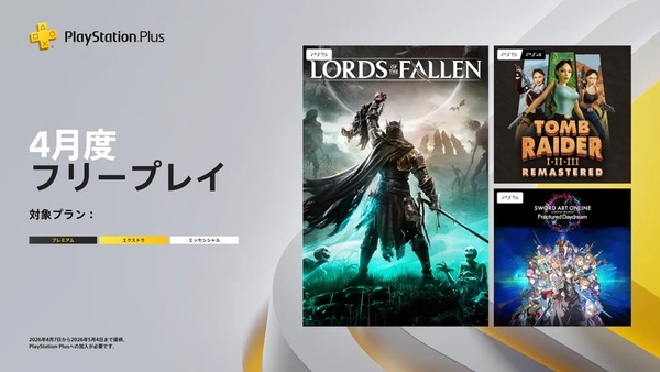 【超豪華!】PS Plus4月のフリープレイに「ソードアート・オンライン FD」「Lords of the Fallen」「トゥームレイダー I-III リマスター」が登場 4月7日から