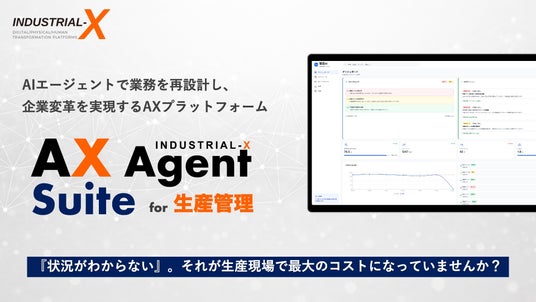 データドリブン経営による企業変革を支援する株式会社INDUSTRIAL-X(本社:東京都港区、代表取締役CEO:八子 知礼、以下「当社」)は、製造現場の人・設備・在庫・進捗などの情報をリアルタイムに把握し、最適な判断を支援する生産管理AIエージェント「AX Agent Suite for生産管理」の提供を開始したことをお知らせいたします。