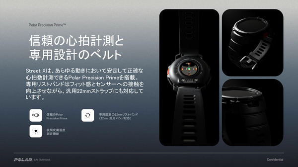 Street Xは、同社がこれまで展開してきた「Pacer Pro」の実質的な後継モデルにあたる。20代〜40代の都市部で生活するランナーを主なターゲットに据え、従来のガチ志向とは異なるファッション性とマルチユース性を打ち出した。同社代表取締役の榊原伸司氏は発表会で「ポラールというと「ガチ」のイメージがあったが、それを払拭したい。デザインにもこだわりのある若い方にリーチしていく」と語った。