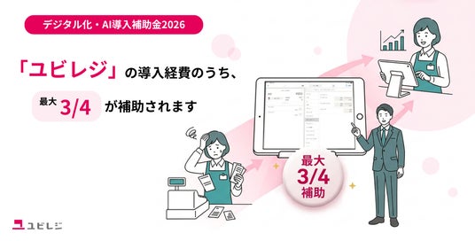 “カンタンがいちばん”がコンセプトのクラウドPOSレジ「ユビレジ」を提供する株式会社ユビレジ(本社:東京都渋谷区、代表取締役:木戸啓太)は、「ユビレジ」およびオプション製品、周辺機器が「デジタル・AI導入補助金2026」の対象ITツールに認定されたことをお知らせします。