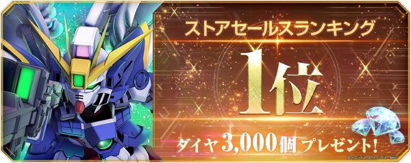 バンダイナムコエンターテインメントは4月2日、iOS/Android/PC向けガンダムシミュレーション「SDガンダム ジージェネレーション エターナル」でストアセールスランキング1位達成したことを記念し、ダイヤ3000個を全ユーザーへ無料配布した。