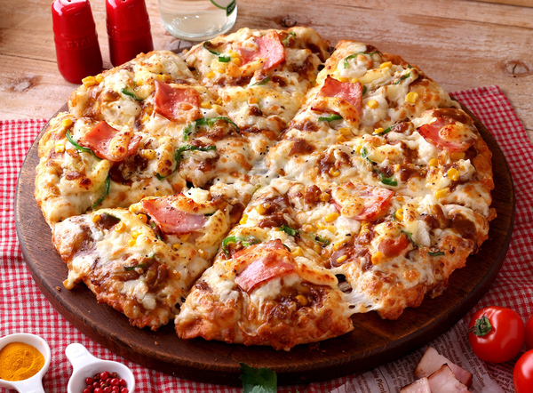 マヨネーズとオニオンを和えたポテトをベースに、コーンの甘みやベーコンの旨みを組み合わせた1989年発売のピザです。