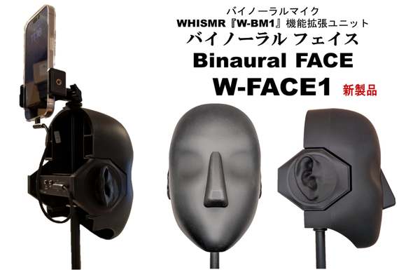 「バイノーラル・フェイス W-FACE1」は、「WHISMR W-BM1」に装着することで、顔表面で生じる回折・遮蔽・反射の要素を付加し、音像の自然さを補う役割を果す。声や楽器の“実在感”がより感じられる録音に寄与するとのこと(※音像の感じ方には個人差がある)。