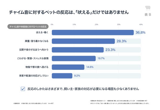 株式会社ドッコ(本社:静岡県静岡市)は、現在犬または猫と暮らしている方を対象に、チャイム音や来客音に対するペットの反応についてアンケートを実施しました。