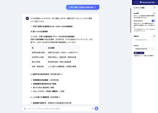 行政ナレッジとの連携も可能な「Deep Research」機能を搭載