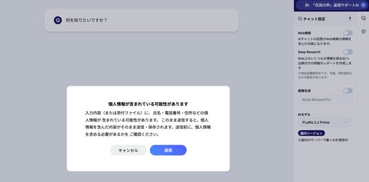 4. 個人情報の自動検知・禁止ワードブロック・検知ログの3層防御を搭載 ― 「使わせたいが、漏らさせない」情報ガバナンスをAIの力で実現
