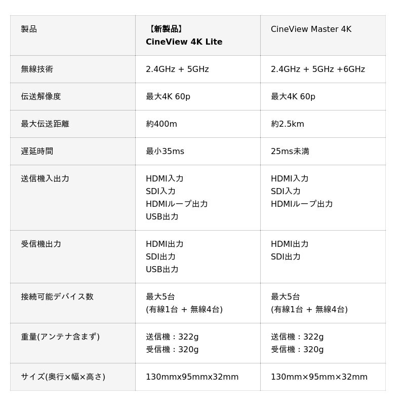 CineView Master 4K Liteは4K対応、映像・音声ワイヤレス伝送システムです。