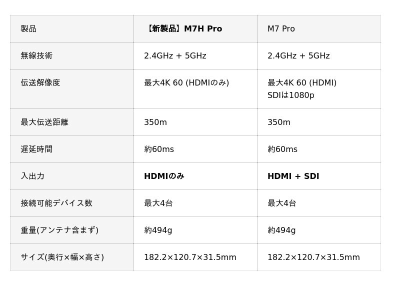 2025年7月に発売された「CineView M7 Pro」の基本性能はそのままに、SDI入出力を省略したミラーレスカメラ向けのモデルです。