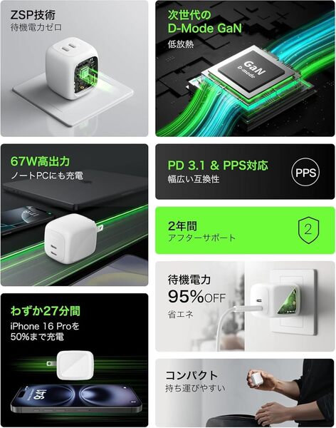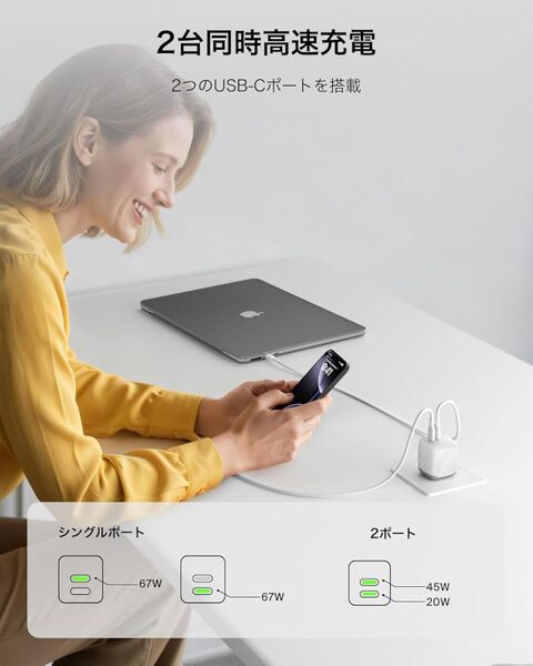 USB-C充電環境が当たり前になった今、「何をどこまで1台にまとめるか」はユーザーごとに最適解が異なるもの。その中で、67W・2ポートという構成は、スマートフォン中心の人にもノートPC併用の人にも折り合いをつけやすい仕様です。