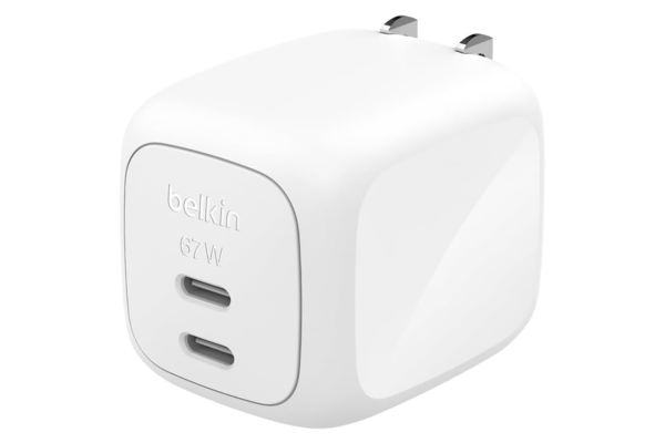 そんな状況を解決してくれそうなのが、Belkin CubicCharger 67W 2ポート アダプター「WCH020qcWH」。USB-Cを2ポート備え、単ポート使用時は最大67W出力に対応するGaN充電器です。