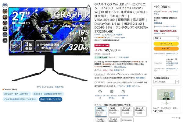 GRAPHTの27型ゲーミングディスプレーをチェック