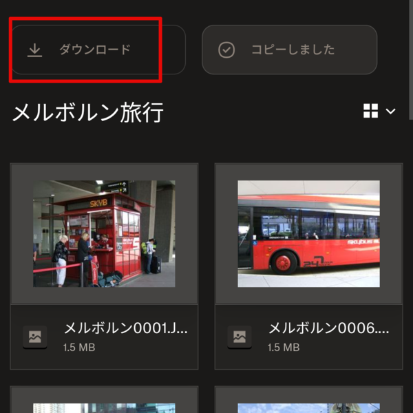 あとは相手側でも自由にフォルダ内の写真やビデオが閲覧できます。気に入った写真はダウンロードすることもできます。