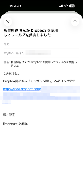 共有された相手がリンクをタップすると、DropoboxアプリとWebブラウザのどちらで開くかの選択画面が表示されます。Dropboxアカウントを持っていない、あるいはDropboxアプリをインストールしていない相手でも、ブラウザで表示できるので問題ありません。