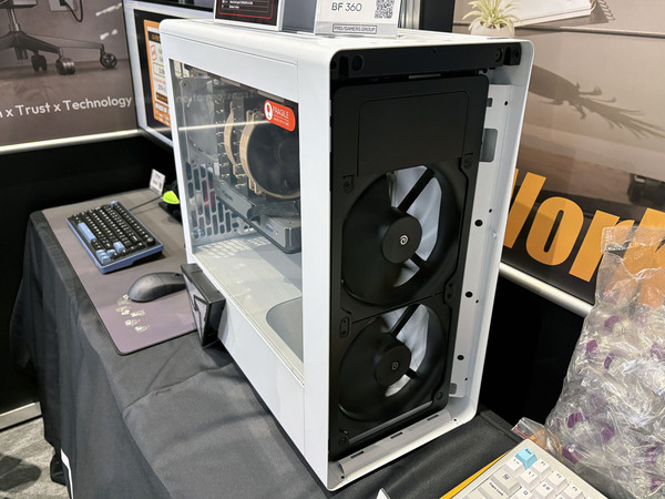 ThundeX3のゲーミングチェアCORE 360を参考出展。可動式のランバーサポートを搭載するため、体を捻っても体にフィットする仕様。さらに従来モデルのCORE Smartにはなかった上下の可動域が追加されている