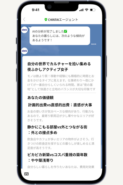こんな風にユーザーの価値観や暮らし方を分析してくれます(画像出典:CHINTAI)