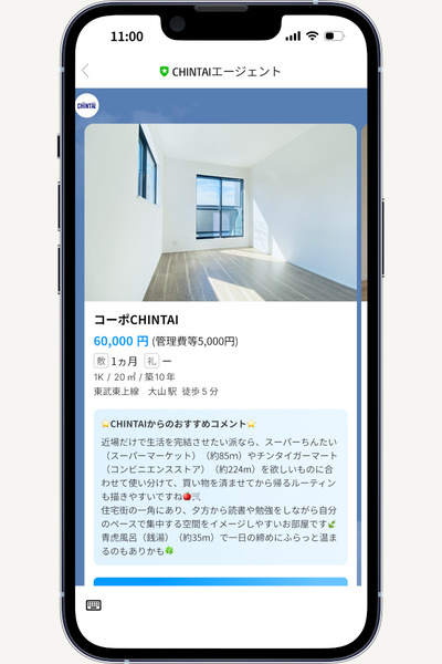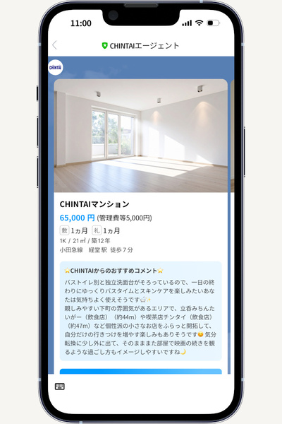 昨年12月、物件ポータルサイトを提供するCHINTAIが、「CHINTAIエージェント」というサービスをリニューアルしました。発表によると、生成AIを使って「探さない部屋探し」を実現し、予想外の好条件な部屋が見つかる可能性も高めて、暮らしが見える部屋探しをかなえる、そんなサービスなのだとか。