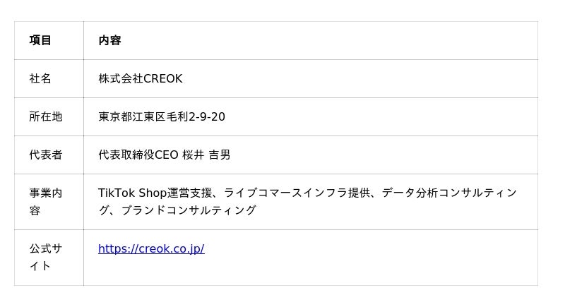 株式会社CREOK 広報担当 メール:info@creok.co.jp