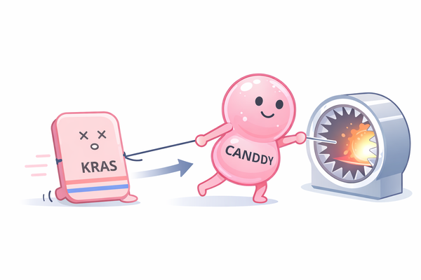 そんなCANDDYが狙いを定めているのが、がん創薬における「聖杯」(価値が高いが、達成不可能とされる目標)とも呼ばれるKRAS(ケーラス)という標的だ。KRASは、細胞の増殖を制御するスイッチのようなタンパク質で、膵臓がんや大腸がんなど、多くのがんに関与している。