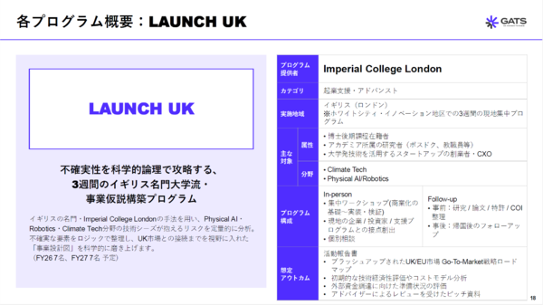 「LAUNCH UK」公募サイト:https://gats-web.jp/program2/launch_UK