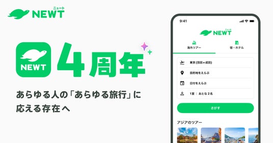 株式会社令和トラベル(本社:東京都渋谷区、代表取締役社長:篠塚 孝哉)が運営する、かしこい、おトク、旅行アプリ『NEWT(ニュート)』は、2026年4月5日にサービス開始4周年を迎えました。