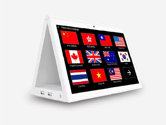 翻訳機とタブレットを連携することで、手書き入力した文字を各国言語へ翻訳できます。翻訳機能はタブレット最大5台まで同一料金でご利用可能です。受付だけでなく館内や店舗内など、持ち運んで利用することも可能です。なお、筆談タブレットはオプションとして39,800円(税別)で提供しております。筆談タブレットで翻訳機能をご利用いただいた場合でも、各プラン料金内でご利用いただけますので、別途翻訳費用は発生いたしません。