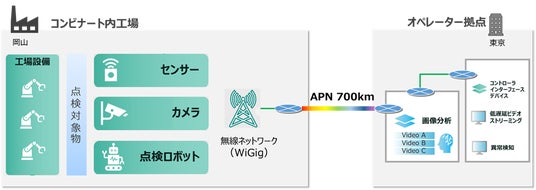 こうした課題の解決を目的として、2026年2月に、IOWN(R) APNと60GHz帯無線LAN (WiGig注2) を活用した大容量・低遅延通信環境の構築について、岡山県の水島臨海工業地帯 (水島コンビナート) において検証を実施しました。