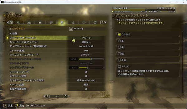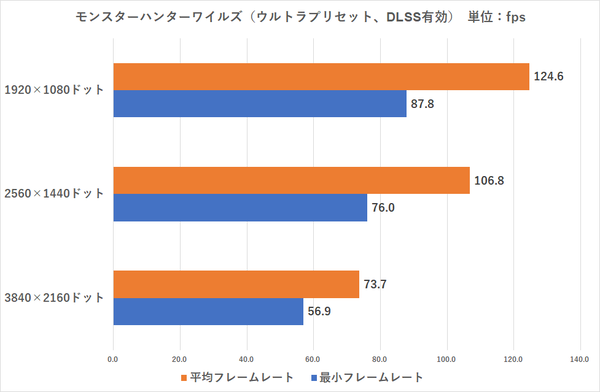 さらに「モンスターハンターワイルズ」(以下、MHWs)では、「ウルトラ」プリセット選択したうえで、DLSSを有効にしてゲームをプレイ。その間のフレームレートをCapFrameXで計測している。