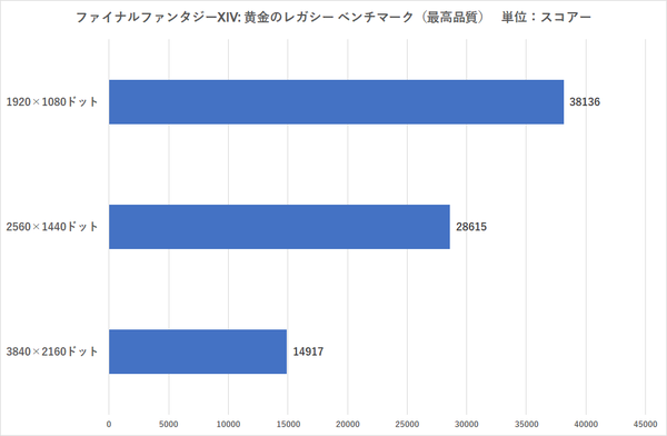 「ファイナルファンタジーXIV: 黄金のレガシー ベンチマーク」(以下、FF14ベンチマーク)は、「最高品質」プリセットで実行している。スクウェア・エニックスが示す指標では、1万5000スコアー以上で最高評価の「非常に快適」になる。