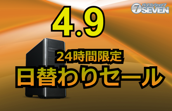 4月9日、BTOパソコンメーカーであるセブンアールジャパンが運営するパソコンショップSEVENが『2026/4/9 24時間限定セール』を実施する。セール期間中は、最新のゲーミングPCやデスクトップPCが最大80,000円オフで販売され、期間は4月9日0:00から23:59までの24時間限定となる。