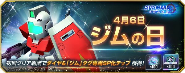 バンダイナムコエンターテインメントは4月6日、iOS/Android/PC(Google Play Games)向けガンダムシミュレーション『SDガンダム ジージェネレーション エターナル』について、4月6日は「ジムの日」として、ジムにフィーチャーした期間限定スペシャルステージを開催中。開催期間は、2026年4月23日11時59分まで(予定)。