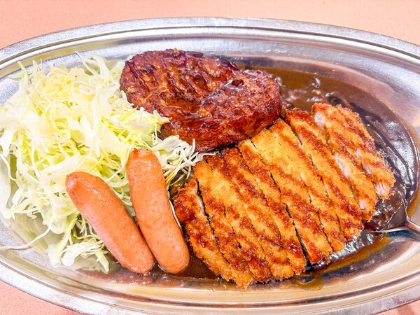 一番人気はロースカツカレーだそうですが、私は欲張りなので、カツ(ロースカツカレーと同量)、ハンバーグ、ウィンナー全部のせの「Lセットカレー中」を注文。カツは脂っこくなくて、カットが小さめなのでぺろっと食べてしまいました。ハンバーグもふんわりと軽め。お店の方に聞いたところ、鶏のひき肉を使っているそうです。納得!