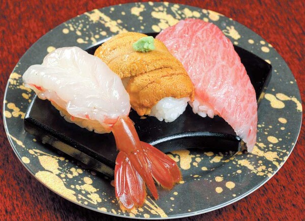 えびが大好きなので、「もりもり三点盛」と「北陸えび三点盛」を注文。ぼたんえび、生甘えび、富山産白えび、生ガスエビと、えびを4種類も食べてしまいました。特に印象に残っているのは、ねっとりとした食感の富山産白えび。生ガスエビも初めてでした。