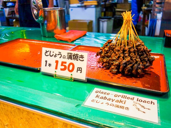 中でも気になったのが、「どじょうの蒲焼き」。金沢では蒲焼といえば鰻よりどじょうだそうで、ここ近江町市場でも何店か見かけました。こちらが3番目の絶対食べたいグルメ!