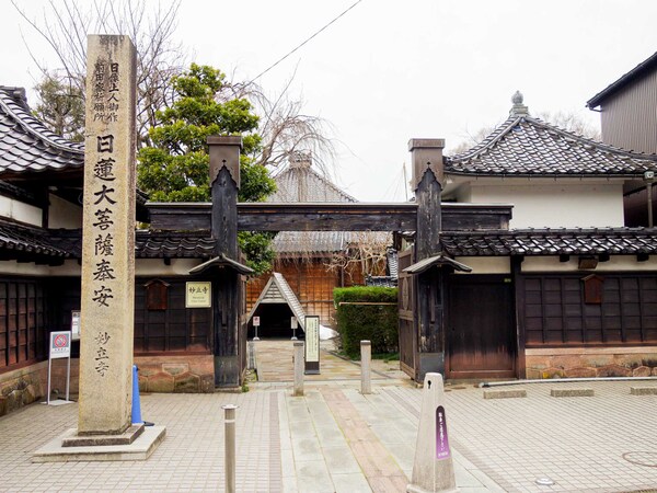 ひがし茶屋街に比べると、にし茶屋街は静かでゆっくり散策できました。歩いていたら忍者寺として知られる人気観光スポット「妙立寺」にたどり着き、外観の写真を撮ることができました。敵をかく乱するさまざまな仕掛けからそう呼ばれるようになったそうですが、実は、忍者とはまったく関係ないとのこと。