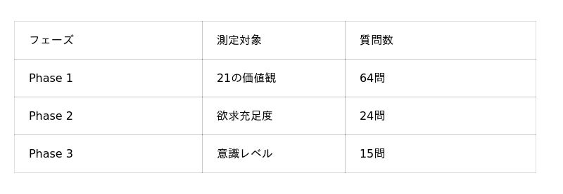 しかし、既存の性格診断やエンゲージメント調査は、行動パターンや満足度を測定するものであり、その人が「本当に大切にしているもの」を構造的に明らかにするものではありませんでした。