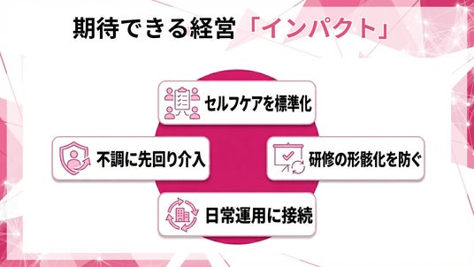 本サービスは医療行為(診断・治療)を提供するものではありません。従業員のセルフメンテナンスと職場の予防的運用を支援する教育・コンテンツ提供です。
