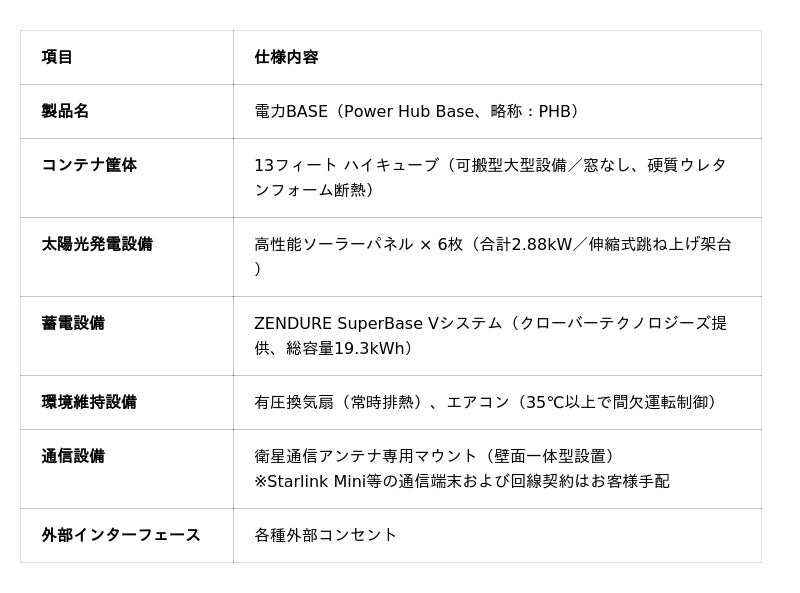 【ヴィガラクス】現場に置くだけで「無補給・通信完備」の前線基地が稼働。13フィート型・完全オフグリッド電源「電力BASE(PHB)」を提供開始