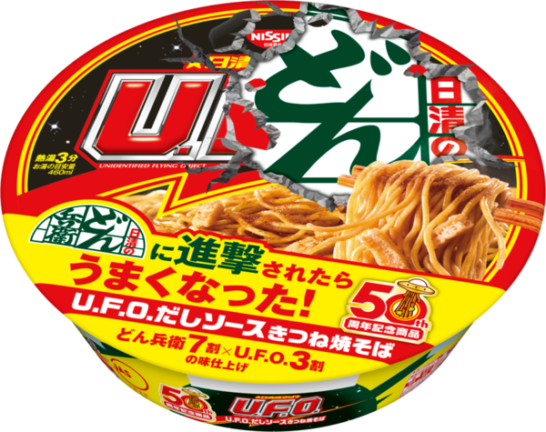 今回、発売50周年を記念し、"進撃されたらうまくなった"をコンセプトに、「どん兵衛」の"だし感"と「U.F.O.」の"ソース感"を掛け合わせた商品2品を発売します。