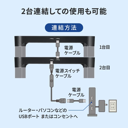 USBポートが2つついており、本製品を2台連結させて使用することもできます。