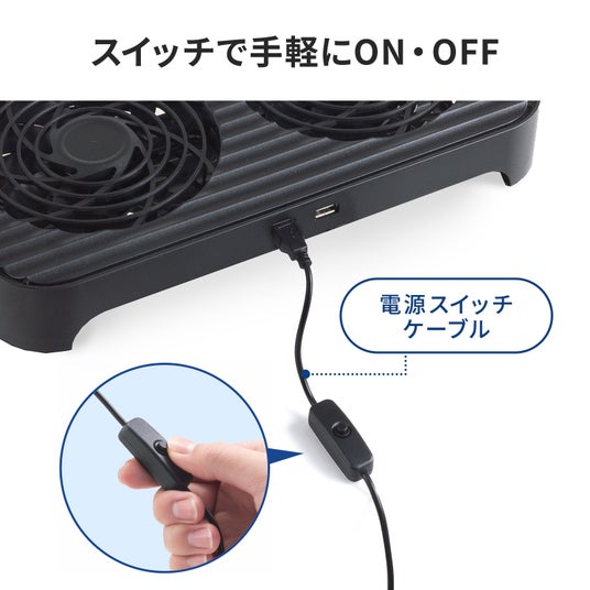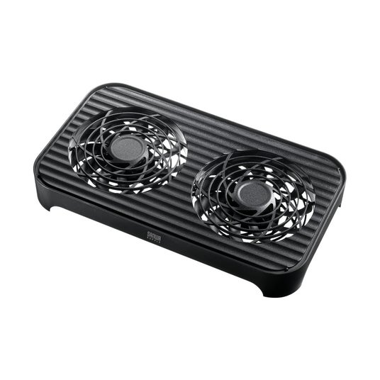コンパクトな筐体に静音ファンを2基搭載し、機器の下に置くだけで効率的な放熱をサポートします。夏場の高温環境や、長時間稼働によるデバイスの速度低下・フリーズといった「熱暴走」のトラブルを未然に防ぎ、大切な機器の安定動作と長寿命化を実現します。